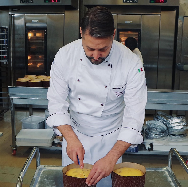 Μέσα στις έντονες, ανομοιογενείς κυψέλες των αφράτων και με τη σχεδόν αέρινη υφή προζυμένιων του panettone, καταφέρνει να χωρά ολάκερη την παράδοση ενός τόπου. Χωρά όμως και η δική του ιστορία στη γείτονα χώρα, που αν και μετρά 30 και βάλε, χρόνια, πρώτα σπουδών (είναι τελειόφοιτος Ιατρικής) και έπειτα ενεργούς δράσης σε επιχειρήσεις και βιομηχανίες τροφίμων (παγωτού και ειδών ζαχαροπλαστικής), μόλις τα τελευταία τρία χρόνια και με αφορμή το δεύτερο lockdown της Ιταλίας, μπόρεσε να κάνει το όνειρό του πραγματικότητα. Να αποδείξει, δηλαδή, στους Ιταλούς ότι δεν χρειάζεται να έχεις Μιλανέζικες ρίζες για να μάθεις, να αγαπήσεις, να εξελίξεις την τέχνη -που κατ’ ουσία είναι τεχνική – του αυθεντικού και premium, γευστικά και ποιοτικά, panettone. Το μόνο που χρειάζεται είναι μεράκι -που μεταφράζεται σε αφοσίωση- και από αυτό ο Μιχάλης, όπως μαρτυρούν και οι βραβεύσεις του, έχει περισσό.