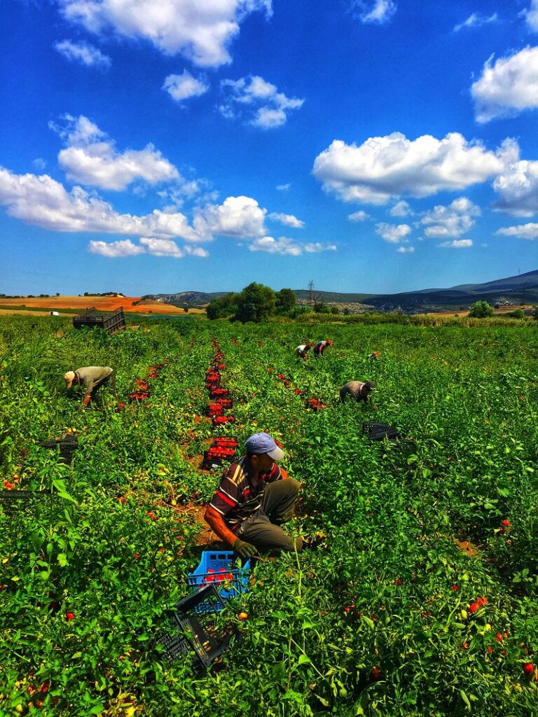 «Υπήρχαν αναφορές, υπήρχαν και προσλαμβάνουσες. Όχι μόνο στο στενό οικογενειακό περιβάλλον, αλλά και ευρύτερα, στον τόπο, στις γειτονιές, στις αυλές που μεγαλώσαμε» θυμάται ο Σάκης . «Η μυρωδιά της ντομάτας, μας ακολουθεί από τις αρχές της δεκαετίας του ’90, όταν παιδιά ακόμα, περνούσαμε έξω από το μεγάλο εργοστάσιο της ντοματοβιομηχανίας του Νομικού, στον Αλίαρτο της Βοιωτίας. Και έπειτα, στα σπίτια μας, όταν τα καλοκαίρια μαζεύονταν οι γυναίκες του χωριού και έστηναν τη δική τους γιορτή. Μητέρες, κόρες και γιαγιάδες, ανάμεσα στα αστεία, στο μπόλικο κουβεντολόι και στις ιστορίες που έτρεφαν την καθημερινή επικαιρότητα του χωριού, έτριβαν επιμελώς στο χέρι, ολόκληρα βουνά από τομάτες. Τότε, βλέπετε, υπήρχε πολύ μεγάλη παραγωγή και έφτιαχναν χυμό τον οποίο και έπειτα μοίραζαν μεταξύ τους. Δεν υπήρχε σπίτι» μου λέει «που να μην έφτιαχνε και να μην αποθήκευε τον δικό του τοματοχυμό για να βγάλει το χειμώνα».