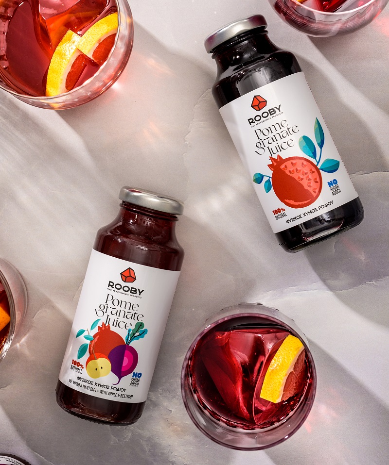 Όσο για την προϊόντική γκάμα του Rooby; Φρέσκο χυμό ροδιού που παράγεται με τη διαδικασία της ψυχρής έκθλιψης και έχει διάρκεια ζωής 5-7 ημέρες στο ψυγείο (και έως και έναν χρόνο στην κατάψυξη), ελαφρώς παστεριωμένο χυμό (γεύση φυσική και γεύση Ρόδι-Μήλο-Παντζάρι), ανθρακούχα αναψυκτικά με βάση το ρόδι (γεύση φυσική και γεύση Ρόδι-Τζίντζερ), τσάγια ροδιού (τσάι χαλάρωσης με μελισσόχορτο, λεβάντα και εκχύλισμα φλούδας ροδιού και τσάι τόνωσης με βότανα του Παρνασσού, αρμπαρόριζα, φυσικό χυμό ροδιού και εκχύλισμα της φλούδας του), μαρμελάδες ροδιού χωρίς προσθήκη ζάχαρης και με μοναδικό γλυκαντικό μέσο τον χυμό από το σταφύλι (η μία περιέχει και σπόρους chia), τσάτνεϊ ροδιού (το ένα με καπνιστό ρόδι, ιδανικό για κρέατα και τυριά και το άλλο με πικάντικο ρόδι που ταιριάζει καταπληκτικά και με ένα πιάτο φασολάδα) και τέλος η παλαιωμένη Μελάσα Ροδιού, σούπερ θρεπτική και τονωτική, με τη γλυκόξινη σπιρτάδα και την φρουτώδη επίγευσή της.