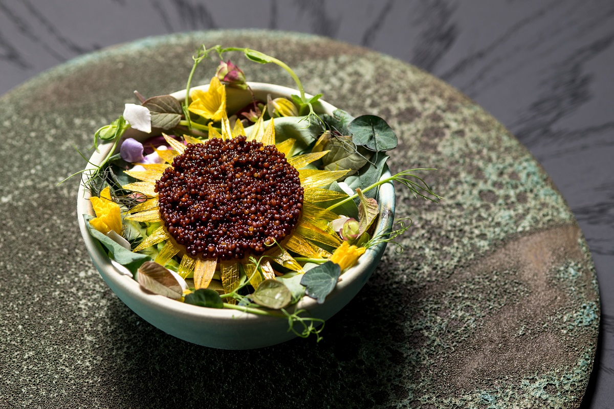 Γ.Π.: Γι’ αυτό και ο ηλίανθος δεν θα φύγει ποτέ από το μενού. Απλώς κάθε φορά φτιάχνουμε διαφορετική παραλλαγή. Αυτό που βλέπεις στο χωράφι το μεταφέρεις στο πιάτο: να είναι όσο πιο κοντά στο φυσικό του, αλλά όσο πιο νόστιμο γίνεται.