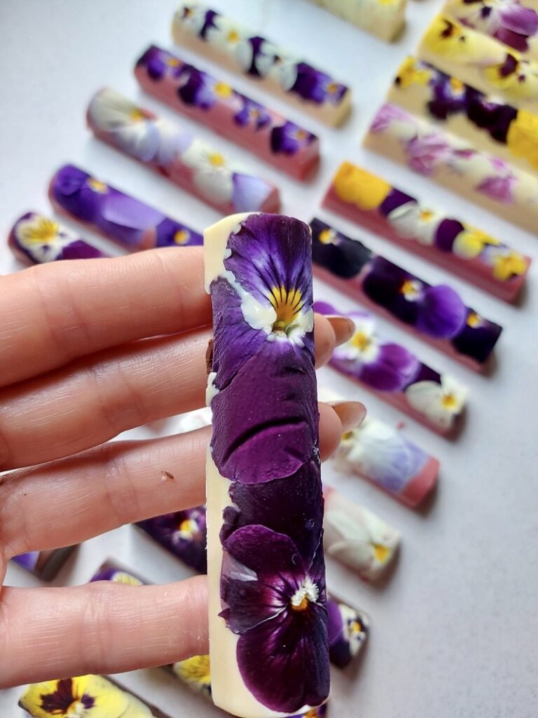 «Τα σοκολατάκια σας τρώγονται;». Αυτή είναι μία ερώτηση που κατ’ εξακολούθηση, δέχεται η Θεσσαλονικιά Σάντυ Δημητριάδου, καθώς ποστάρει στο Instagram φωτογραφίες από τις σοκολατένιες της εμπνεύσεις, οι οποίες είτε κλείνουν μέσα τους, πολύχρωμα βρώσιμα λουλούδια, είτε στολίζονται από αυτά.
