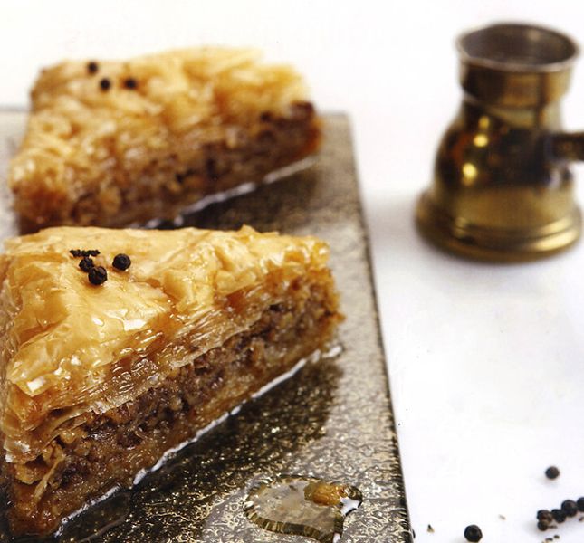 Ένα αγαπημένο γλυκό ταψιού, που φτιάχνεται με φύλλα κρούστας, γεμίζεται με ξηρούς καρπούς, όπως καρύδι και φιστίκι Αιγίνης και σιροπιάζεται. Πολλές χώρες διεκδικούν την καταγωγή του, ωστόσο επικρατέστερη θεωρία φαίνεται πως είναι ότι δημιουργήθηκε από τουρκικά φύλα της κεντρικής Ασίας και τελειοποιήθηκε στις κουζίνες των ανακτόρων του σουλτάνου, στο παλάτι Τοπκαπί. Όπως και να έχει είναι πολύ δημοφιλές γλυκό στη χώρα μας και σήμα κατατεθέν της. Κλείνει ωραία ένα γεύμα, ενώ συνοδεύει πολύ ωραία και έναν καφέ, ιδίως τον ελληνικό.