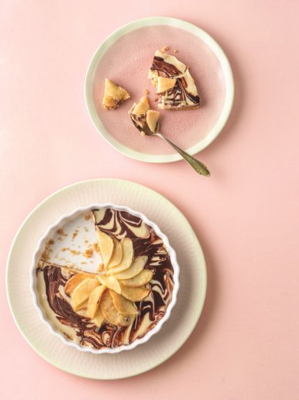 Τάρτα με δύο σοκολάτες, μήλα και βάση cheesecake