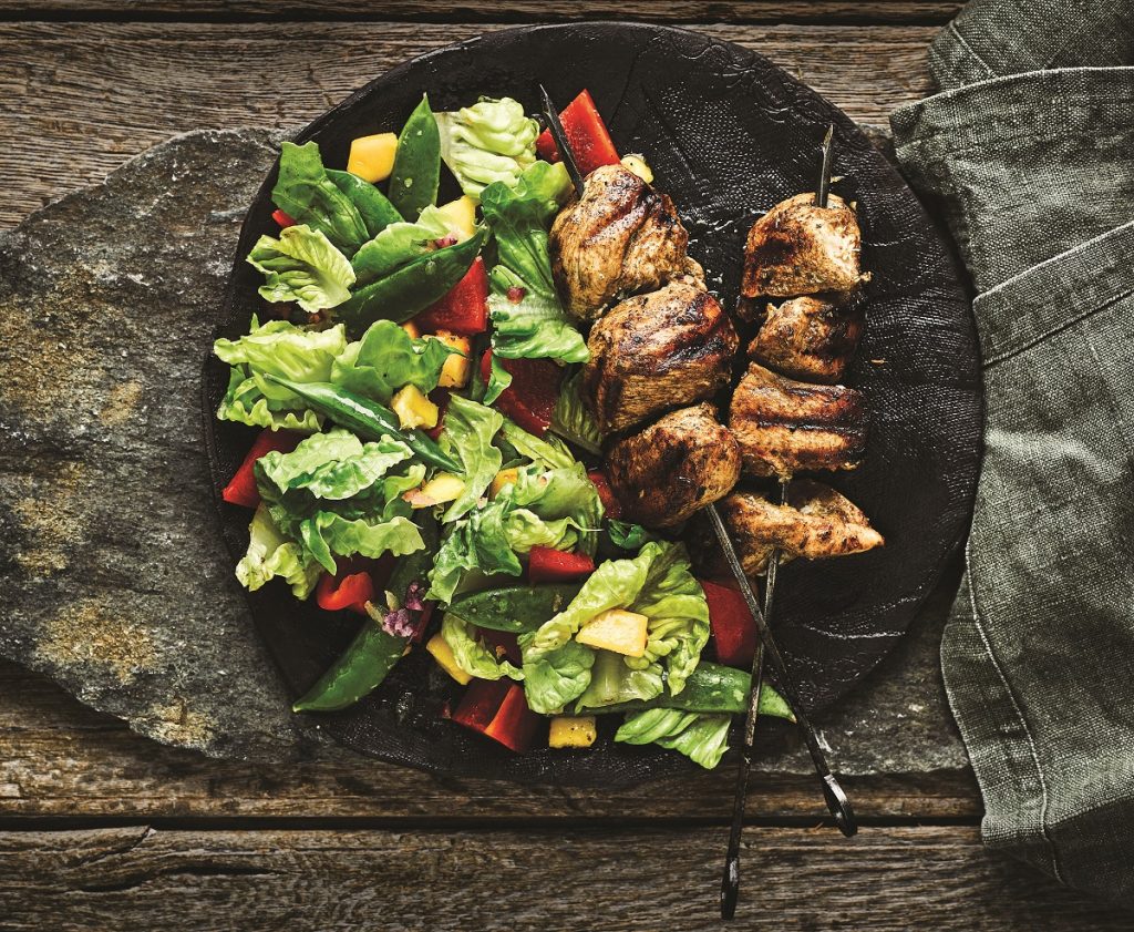 Σουβλάκια κοτόπουλου με σαλάτα μάνγκο
