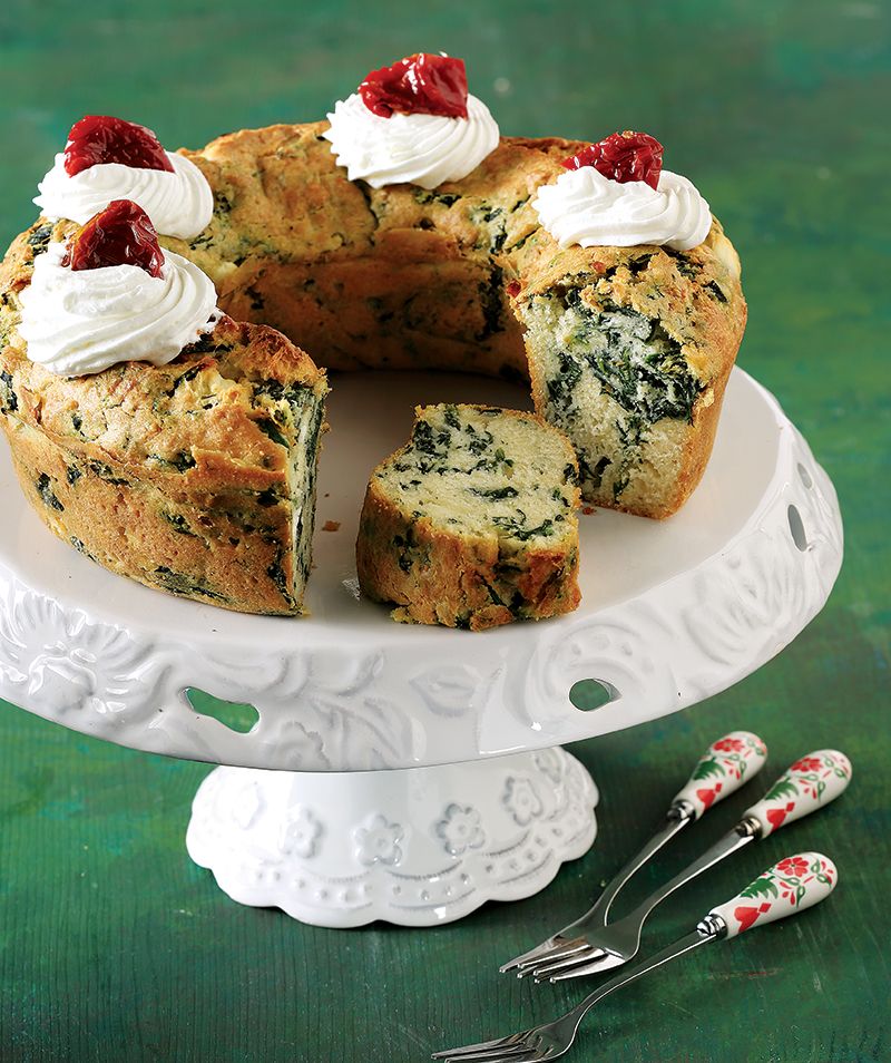 Αλμυρό κέικ με σπανάκι και μους φέτας