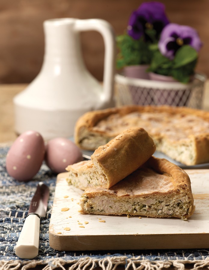 Πίτα με ανοιξιάτικα λαχανικά και πουρέ πατάτας