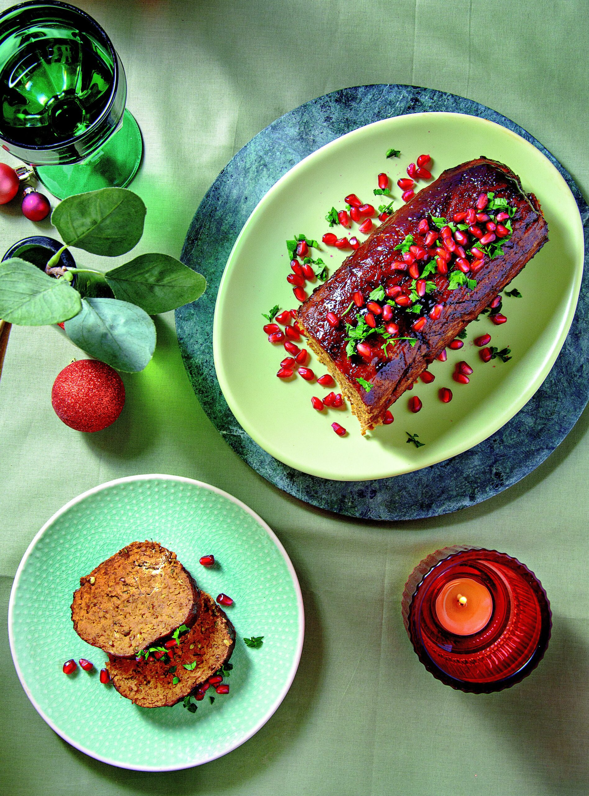 Χριστουγεννιάτικο vegan ρολό με φακές και κουκουνάρι