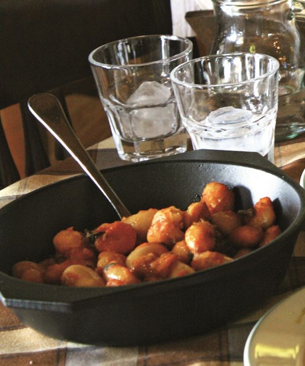 Πατάτες με κιτρινόριζα σβησμένες με γλυκό κρασί