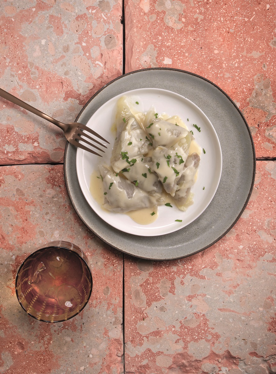 Πρασοντολμάδες με κιμά αυγολέμονο