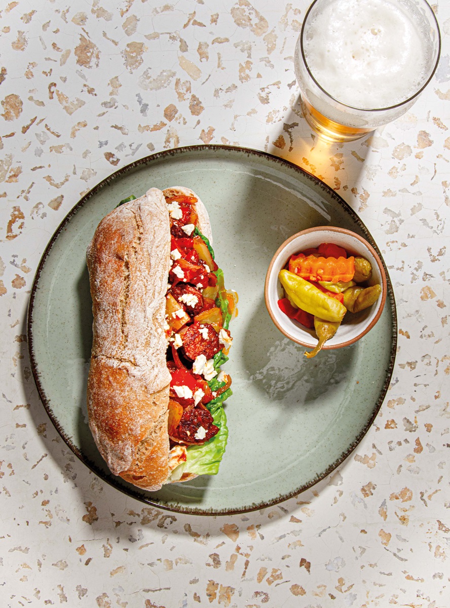 Σάντουιτς με τσιαπάτα, σπεντζοφάι και φέτα