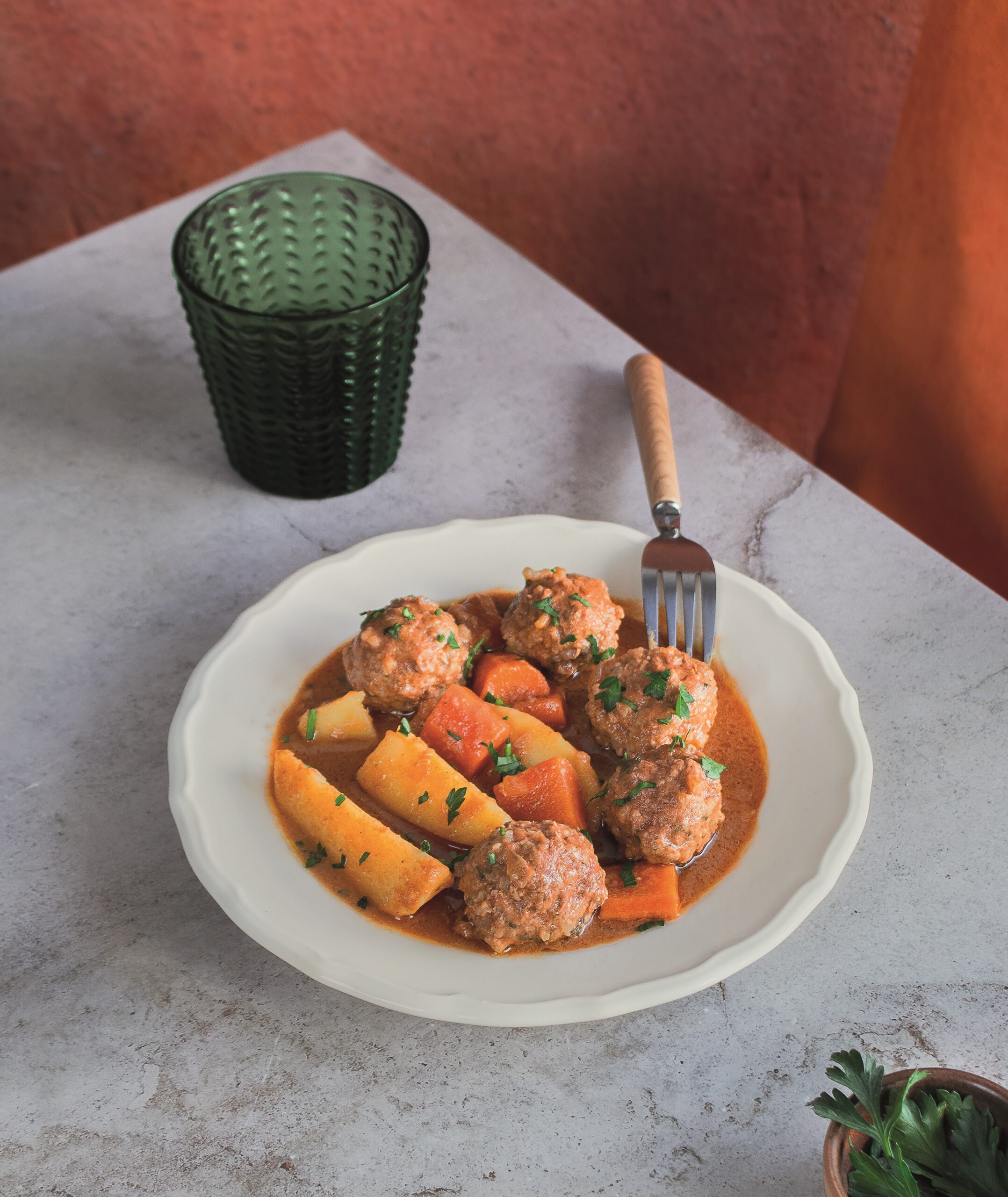 Κεφτεδάκια με σάλτσα καρυδιού και πατάτες