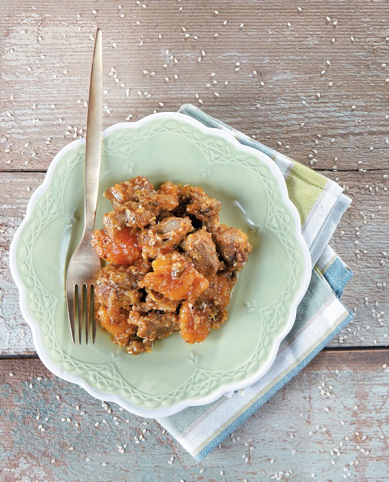 Το κοκκινιστό μοσχαράκι ταιριάζει πολύ με τον πουρέ πατάτας. Τους καλοκαιρινούς μήνες όμως, μπορείτε να τον αντικαταστήσετε με πληθωρικό πουρέ μελιτζάνας, που του πάει πολύ.
