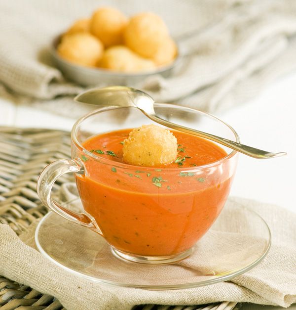 Σούπα ψητής πιπεριάς με τυροκροκέτες