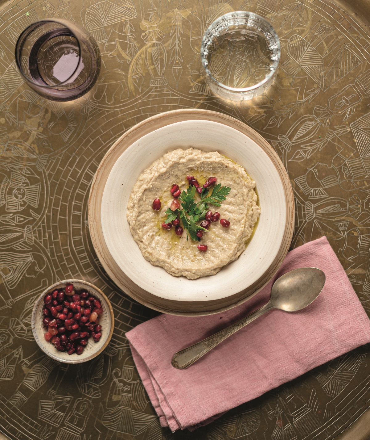 Γεμάτα καλοκαιρινή νοστιμιά, οι μελιτζάνες και τα γλυκόξινα φρούτα εποχής όπως τα τζάνερα, οι βανίλιες και τα δαμάσκηνα, αναβαθμίζουν το συνηθισμένο χούμους.