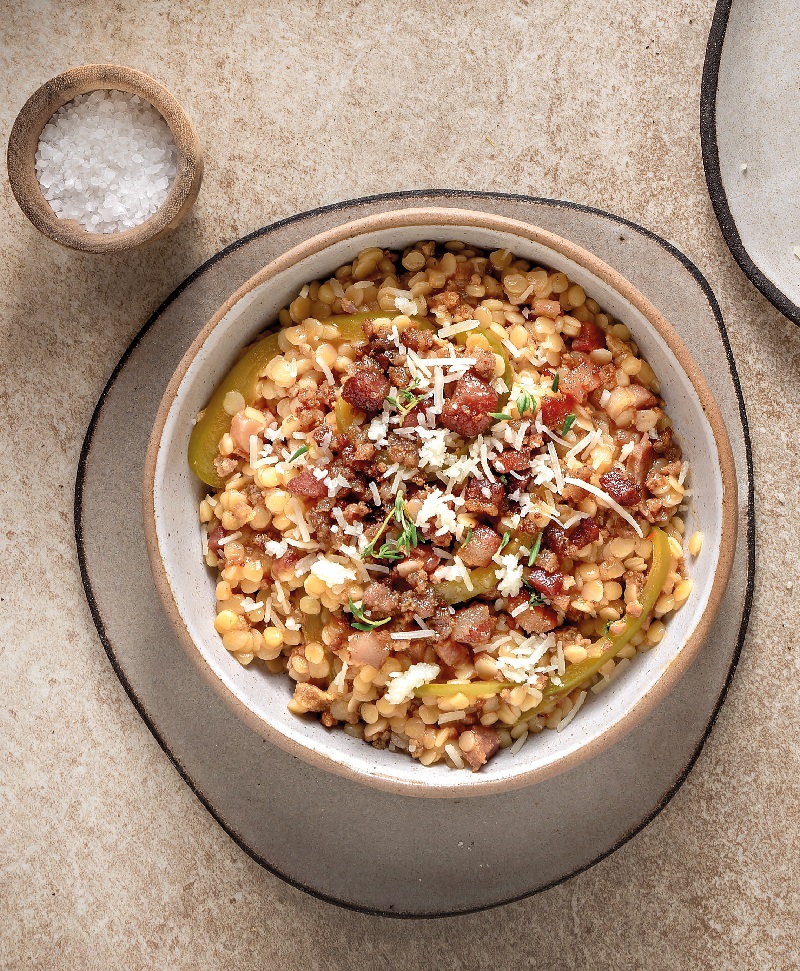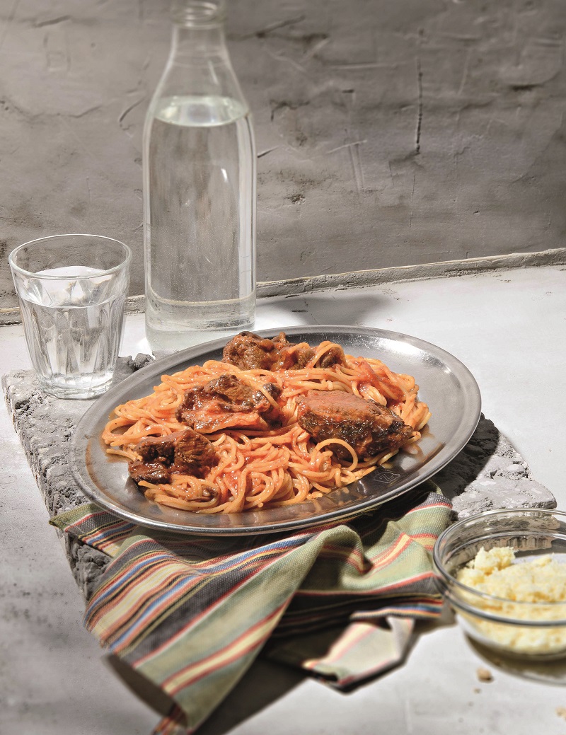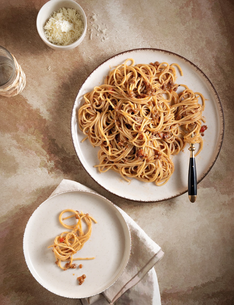 Μακαρόνια με «κιμά» από κόκκινες φακές