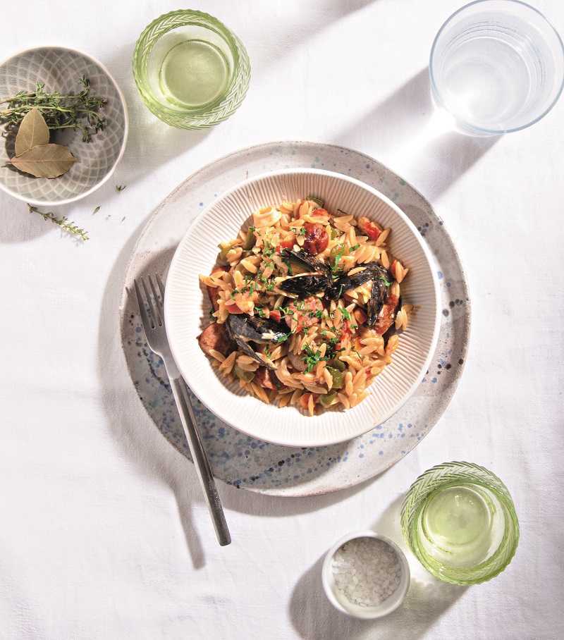 Γιουβετσάκι με ανάμεικτα θαλασσινά και χωριάτικο λουκάνικο με πορτοκάλι