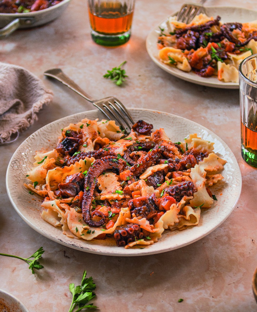 Μηλέικα λαζάνια με χταπόδι ραγού