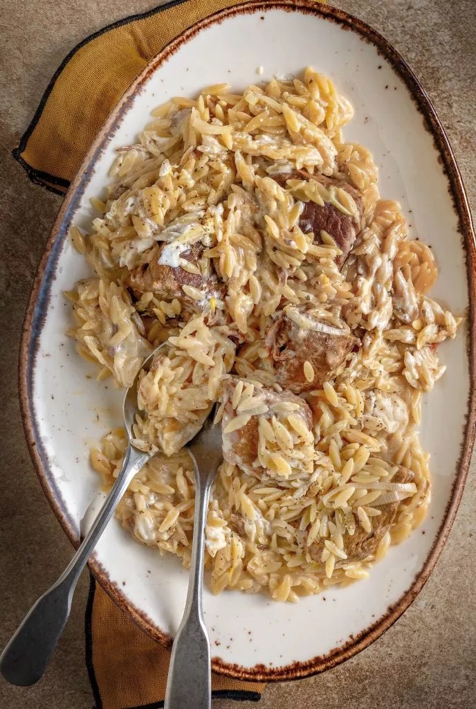 Μανέστρα με μοσχάρι, πράσο και φρέσκια ματζουράνα