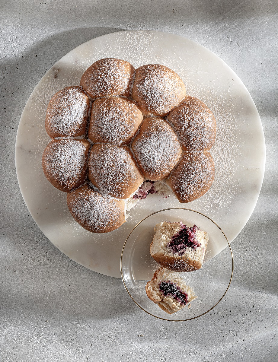 Αφράτα γλυκά ψωμάκια με μαρμελάδα μύρτιλο