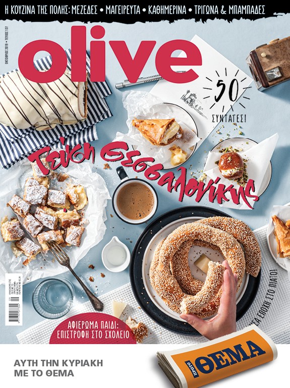 Το Olive που κυκλοφορεί αυτήν την Κυριακή με το ΠΡΩΤΟ ΘΕΜΑ φιλοξενεί ένα πλούσιο αφιέρωμα στην πανέμορφη Θεσσαλονίκη, τους μεζέδες και τα εμβληματικά πιάτα της! Ελάτε λοιπόν να μπούμε μαζί στην κουζίνα της πόλης µε συνταγές από την καρδιά της Μακεδονίας, γεµάτες αρώµατα και αναφορές σε άλλες εποχές!
