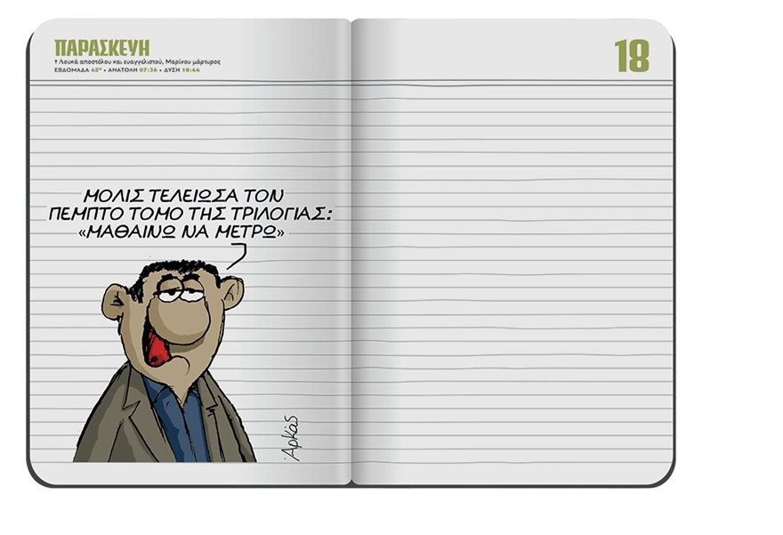2. Το σημειωματάριο-ημερολόγιο Οκτωβρίου 2019 με τα μοναδικά σκίτσα του Αρκά