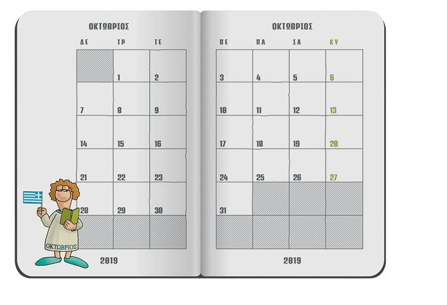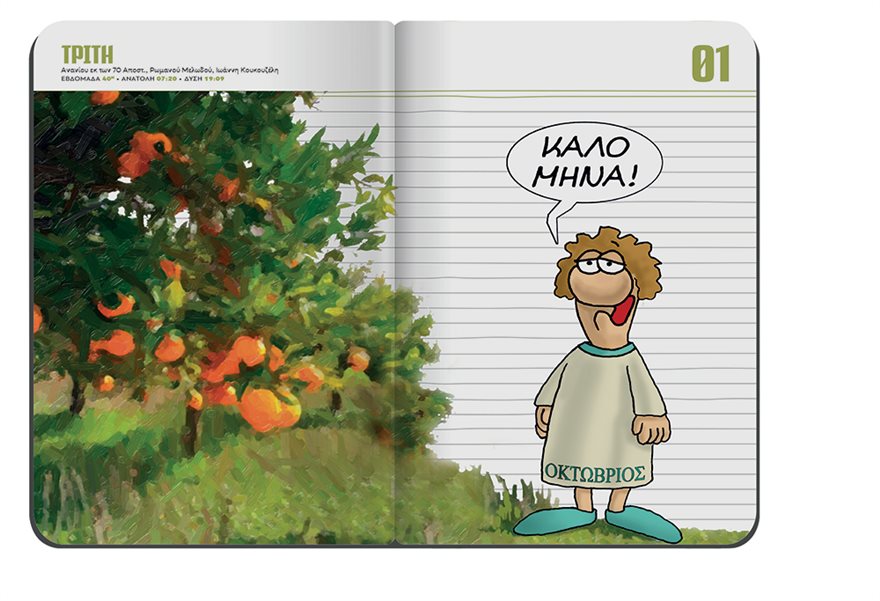2. Το σημειωματάριο-ημερολόγιο Οκτωβρίου 2019 με τα μοναδικά σκίτσα του Αρκά
