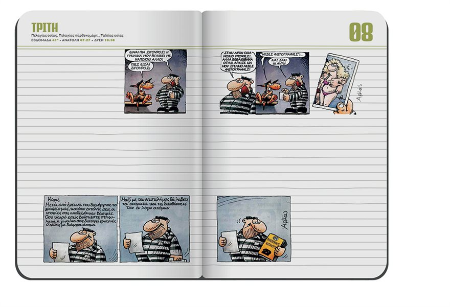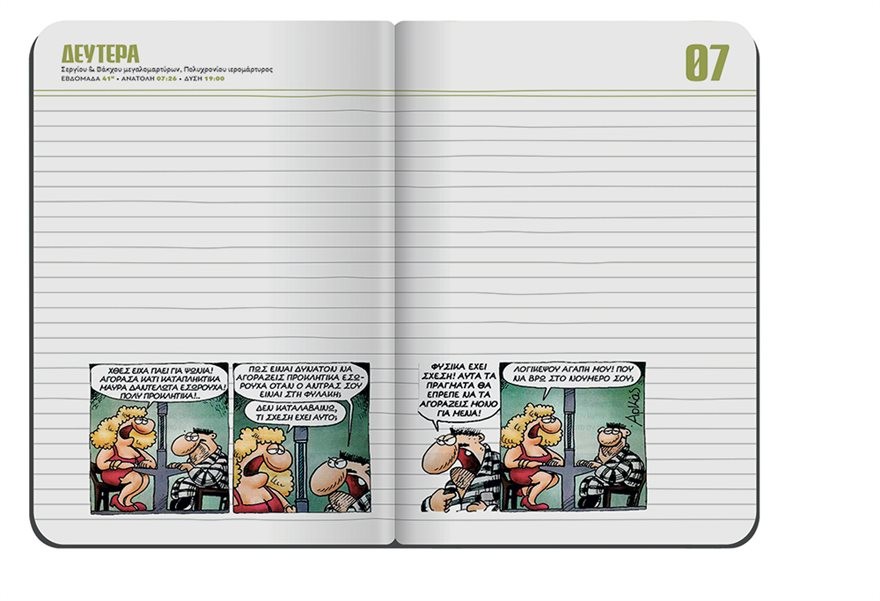 Αυτή την Κυριακή με το ΘΕΜΑ, το πολυτελές σκληρόδετο σημειωματάριο-ημερολόγιο Οκτωβρίου με τα σπαρταριστά σκίτσα του αγαπημένου μας Αρκά είναι στο ΘΕΜΑ. Πρόκειται για μία πολυτελή σκληρόδετη έκδοση -μία για κάθε μήνα- με 120 σελίδες και με ειδικό λάστιχο και σελιδοδείκτη, που σας δίνει τη δυνατότητα να…τα γράφετε όλα. Κάθε μηνιαίο σημειωματάριο περιλαμβάνει ημερολόγιο με δύο σελίδες για κάθε μέρα ξεχωριστά καθώς και ξεκαρδιστικά σκίτσα με το χιούμορ και τους ήρωες του κορυφαίου Έλληνα δημιουργού κόμικ, του Αρκά.