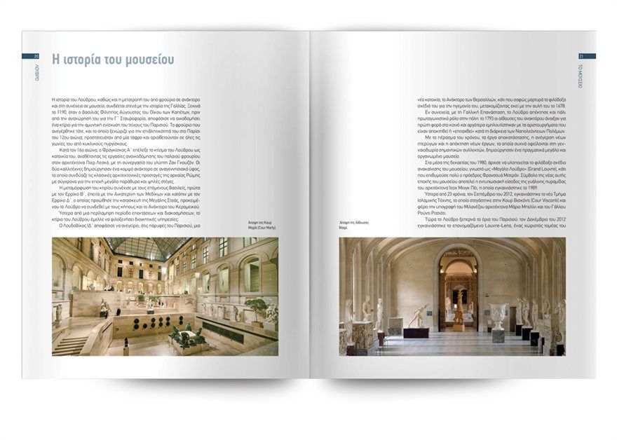 Η σειρά ξεκινά με το περίφημο Λούβρο, ένα μουσείο απέραντο και ασύγκριτα πλούσιο σε καλλιτεχνικούς θησαυρούς, μια πραγματική κολοσσιαία κιβωτός που στέκει επιβλητική στο κέντρο του Παρισιού. Ο πολυτελής τόμος που είναι αφιερωμένος στο Λούβρο αποτυπώνει με πιστότητα την εμπειρία της επίσκεψης σε αυτό τον ιερό τόπο, όχι μόνο της τέχνης, αλλά γενικότερα του ανθρώπινου πολιτισμού. Με τις υπέροχες, μεγάλες εικόνες και τα επεξηγηματικά κείμενα, γραμμένα από βαθείς γνώστες, αλλά όσο πιο απλά και κατανοητά γίνεται, ο αναγνώστης περιδιαβαίνει νοερά τις αναρίθμητες αίθουσες του Λούβρου, κάνοντας ένα μαγικό ταξίδι στην ιστορία της τέχνης. Εμβληματικά έργα παρουσιάζονται σε δισέλιδη ανάπτυξη, αναλύονται και ερμηνεύονται, έτσι ώστε το δέος και ο θαυμασμός να συνδυαστούν με την απόλαυση της γνώσης. Θα ακολουθήσουν αντίστοιχοι τόμοι για το Βρετανικό Μουσείο (Λονδίνο), Ουφίτσι (Φλωρεντία), Ερμιτάζ (Αγία Πετρούπολη), το Εθνικό Αρχαιολογικό Μουσείο (Αθήνα) και τα Μουσεία Βατικανού (Ρώμη).