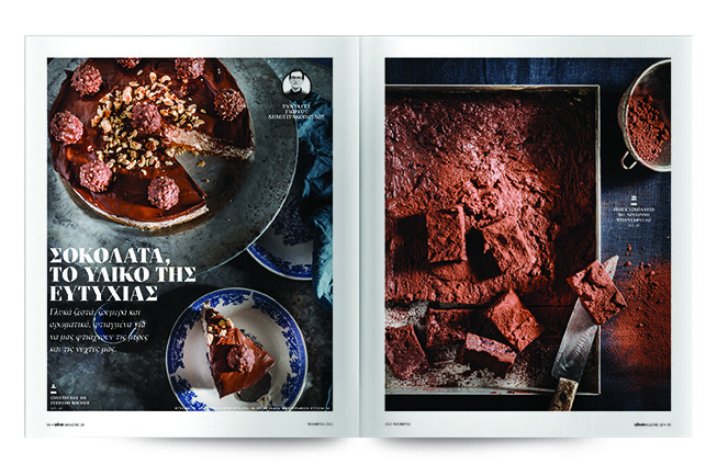 Cheesecake με Ferrero Rocher, Fudge σοκολάτας με λουκούμι τριαντάφυλλο, Βαφλοκούκις με κομμάτια σοκολάτας και κράνμπερι, Cookies με μύρτιλα και λευκή σοκολάτα, Κλασικό γαλλικό φοντάν σοκολάτας, Λουκουμάδες με σοκολάτα/