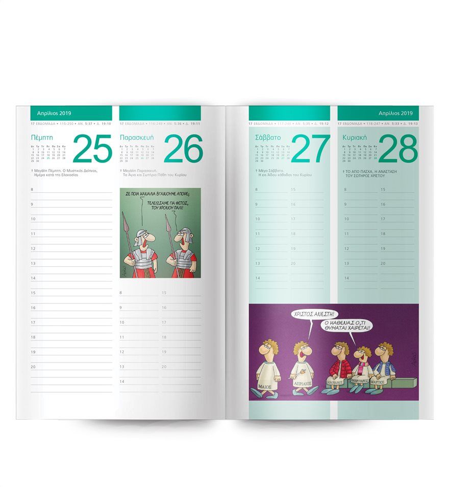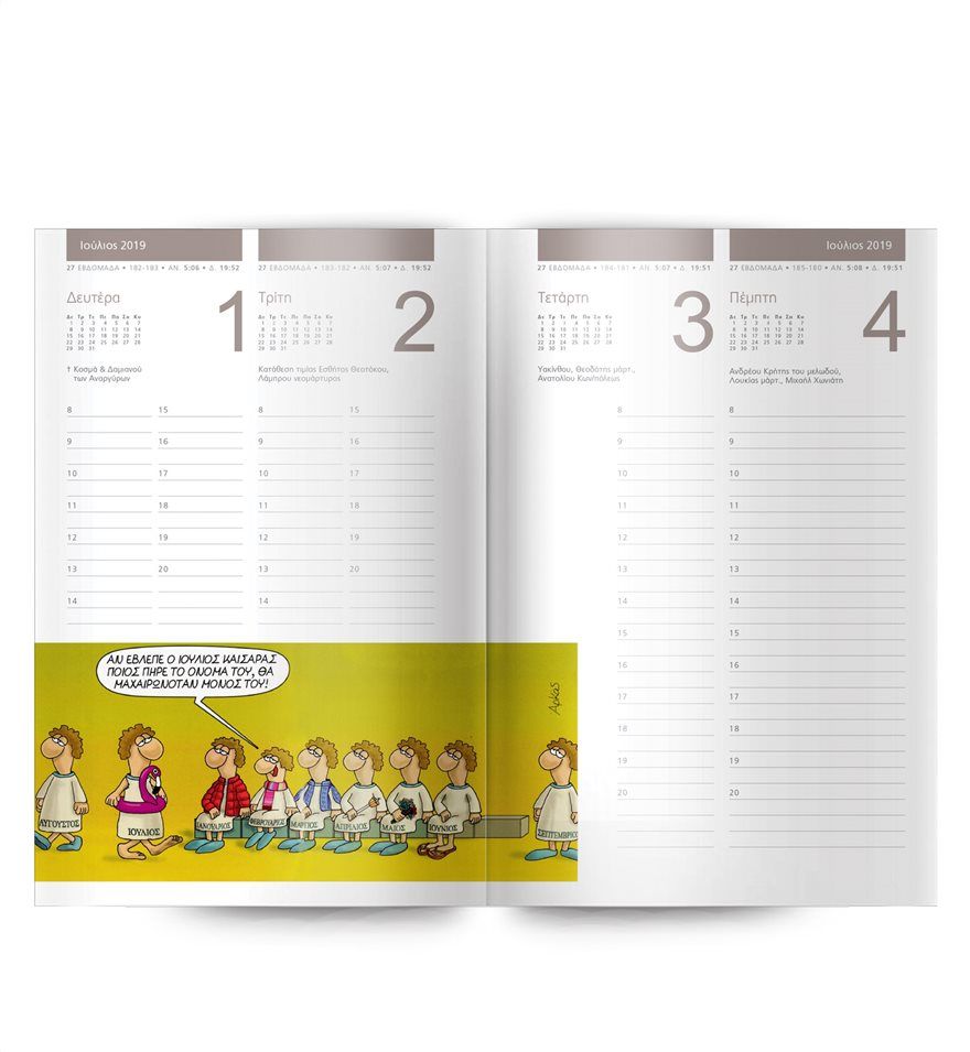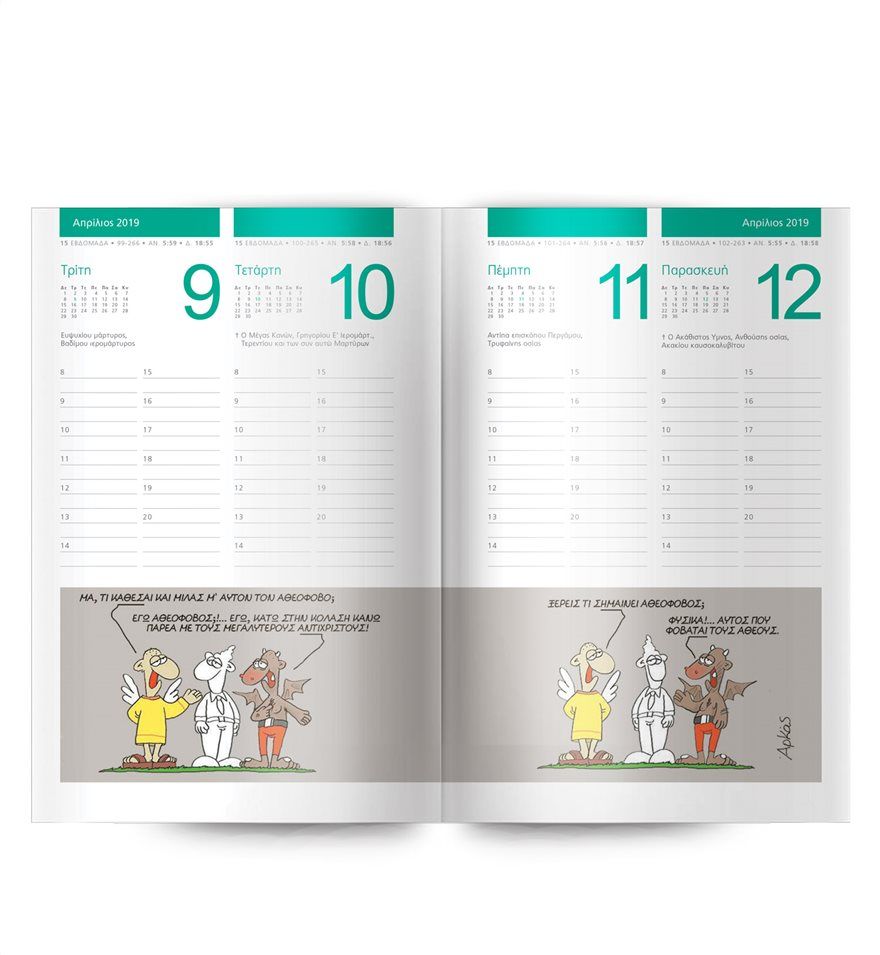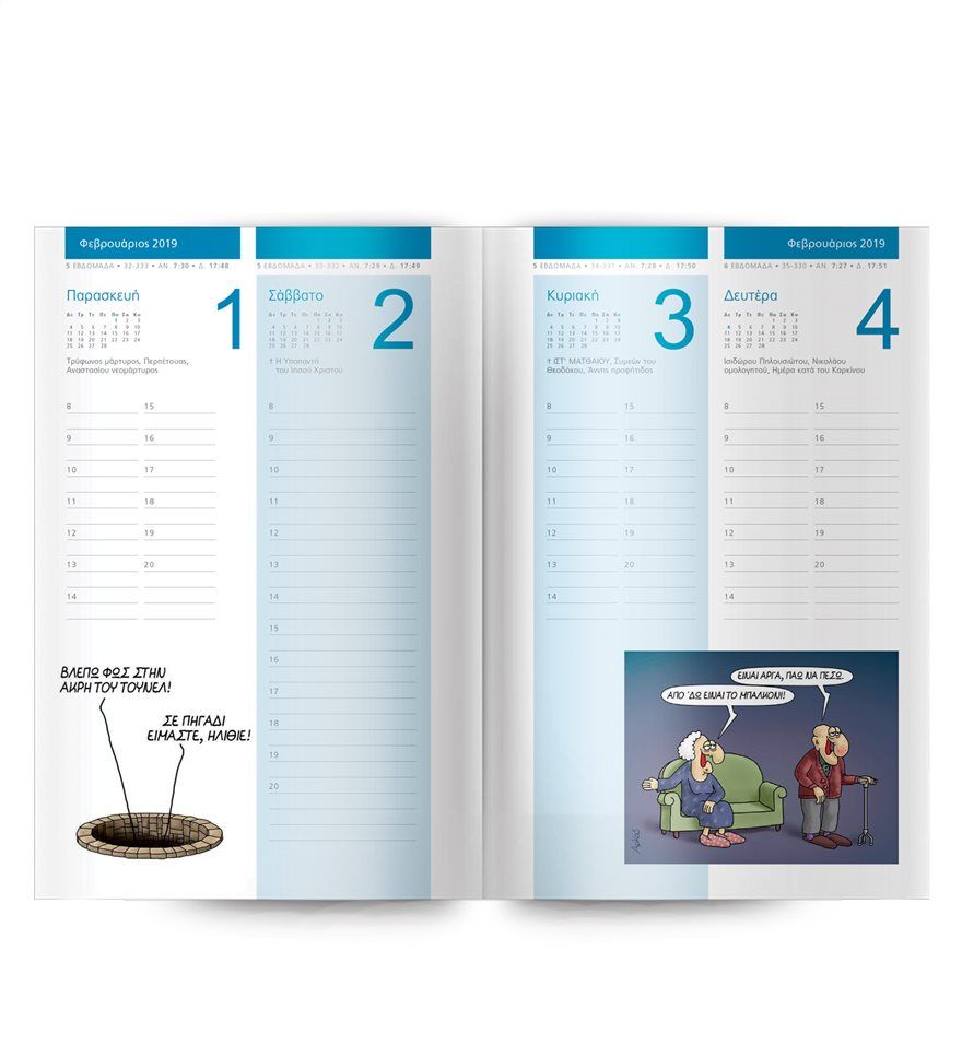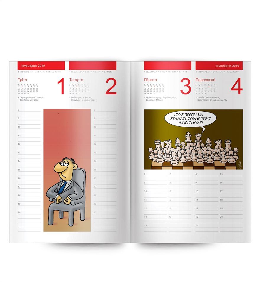Πιστός στο ετήσιο ραντεβού με τους θαυμαστές του αστείρευτου χιούμορ του, ο Αρκάς παρουσιάζει το καθιερωμένο ημερολόγιο για την καινούργια χρονιά. Σε αποκλειστική συνεργασία με το Πρώτο ΘΕΜΑ ο κορυφαίος Έλληνας δημιουργός κόμικ υποδέχεται το 2019 με ένα πολυτελές, σκληρόδετο ημερολόγιο.