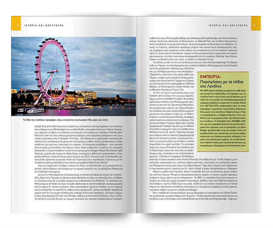 Ταυτόχρονα όμως, το Λονδίνο είναι η Μέκκα της σύγχρονης ποπ κουλτούρας: Δεν υπήρξε ποτέ καμία τάση στη μουσική, τις τέχνες, τη μόδα κ.λπ. που να μην γεννήθηκε ή να μην αναπτύχθηκε στο Λονδίνο. Επαναστάσεις στην κοινωνία και τον πολιτισμό, οι οποίες διαμόρφωσαν -κυριολεκτικά- την πορεία της ανθρωπότητας έχουν αφήσει ανεξίτηλα ίχνη στη βρετανική πρωτεύουσα. Δίπλα σε κάθε μνημείο, μεσαιωνικό ή σύγχρονο, ο επισκέπτης βρίσκει πάντα στο Λονδίνο ένα εντελώς ιδιαίτερο, μοναδικό αξιοθέατο, μιας και πρόκειται για μια πόλη που δεν έχει σταματήσει ούτε στιγμή να μεταμορφώνεται. Στο National Geographic Traveler συμπυκνώνεται η μαγεία του Λονδίνου, πλαισιωμένη από πολυάριθμες εικόνες, χρηστικά tips και ευανάγνωστους χάρτες. Ένας οδηγός-κλειδί της πόλης, για ταξιδιώτες που ξέρουν τι ψάχνουν -και ξέρουν πού θα το βρούν.