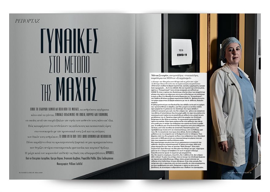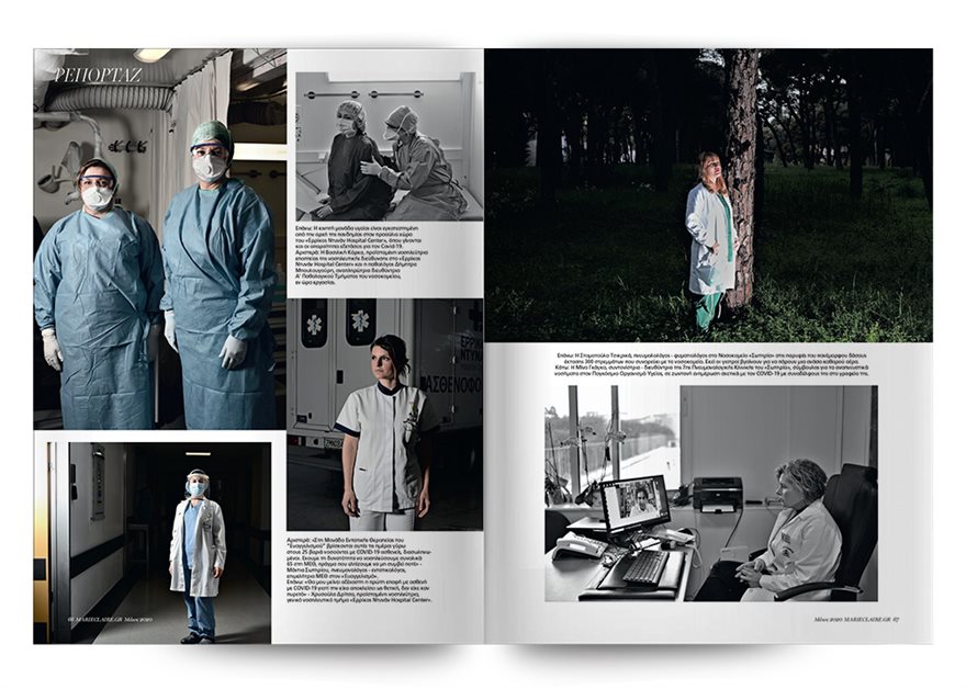 Αυτό τον μήνα το το Marie Claire αποφάσισε να τιμήσει τις γυναίκες που ρισκάρουν καθημερινά για να σώσουν ζωές. Είναι τα εγκάρδια χαμόγελα πίσω από τις μάσκες, τα ανθρώπινα αγγίγματα κάτω από τα γάντια. Γυναίκες οπλισμένες με γνώση, θάρρος και υπομονή, οι οποίες αυτή την εποχή έβαλαν την υγεία των ασθενών τους πάνω απ’ όλα.
