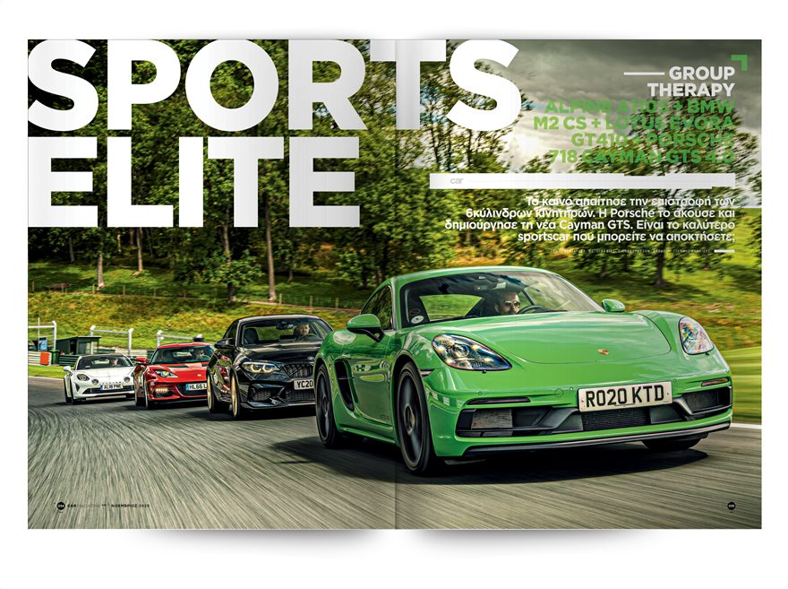Η Porsche Cayman GTS κοντράρεται στον δρόμο και την πίστα με την εκρηκτική BMW M2 CS, την αειθαλή Lotus Evora GT410 και την ντελικάτη Alpine A110 S για την ανάδειξη του πιο ολοκληρωμένου και εθιστικού sports car.