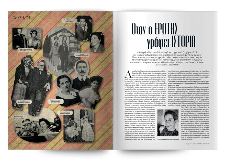 Όμως ο Φεβρουάριος είναι και μήνας του Έρωτα: ένα από τα συναρπαστικότερα βιβλία που διαβάσαμε τελευταία ήταν τα «Ζευγάρια που έγραψαν την Ιστορία της Ελλάδας», της Λένας Διβάνη. Η συγγραφέας και ιστορικός μίλησε στο Marie Claire για τις εκπλήξεις που της επεφύλασσε η έρευνα αυτή που βγάζει στο φως τις προσωπικές ιστορίες ζευγαριών όπως ο Ελευθέριος Βενιζέλος και η Έλενα Σκυλίτση, ο Γεώργιος Παπανδρέου και η Κυβέλη, ο Παύλος και η Φρειδερίκη και άλλων, ενώ φωτίζει και ξεχωριστές γυναίκες όπως η Μαντώ Μαυρογένους.