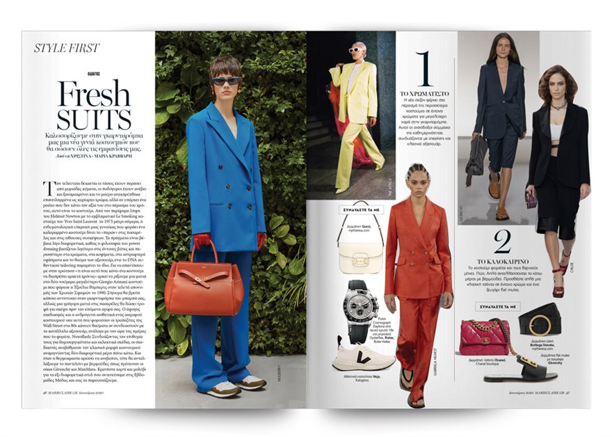 Βουτιά στα trends της Άνοιξης έκανε εγκαίρως η ομάδα μόδας του Marie Claire, για να ξέρετε τι να αγοράσετε τώρα, καθώς οι νέες συλλογές αρχίζουν να κάνουν την εμφάνισή τους στα καταστήματα. Σε πάνω από 70 σελίδες σας παρουσιάζουν τις πιο δυνατές τάσεις, τα χρώματα που θα κυριαρχήσουν, τις γραμμές, τα υφάσματα και όλα όσα πρέπει να γνωρίζετε πριν ανανεώσετε την γκαρνταρόμπα σας.