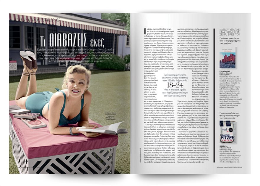 Και επειδή οι αναγνώστριες του Marie Claire αγαπούν το διάβασμα και ζούν έντονα την εποχή τους, από το τεύχος Αυγούστου δεν θα μπορούσαν να λείπουν τα καλά βιβλία και συνεντεύξεις με τις γυναίκες που μας εμπνέουν.