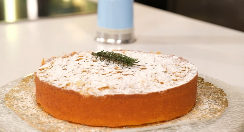 Μια κλασική βασιλόπιτα κέικ με ξύσμα πορτοκαλιού και αμύγδαλο σε σκόνη.
